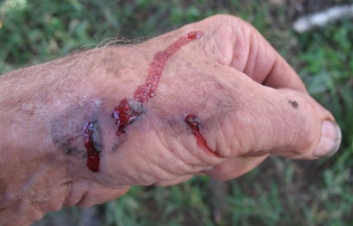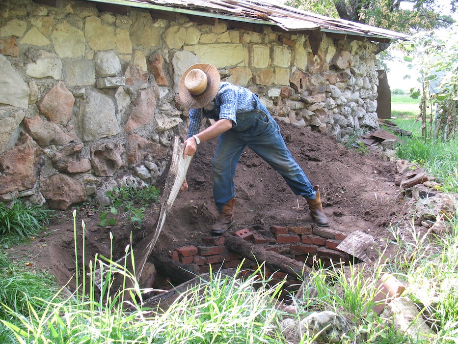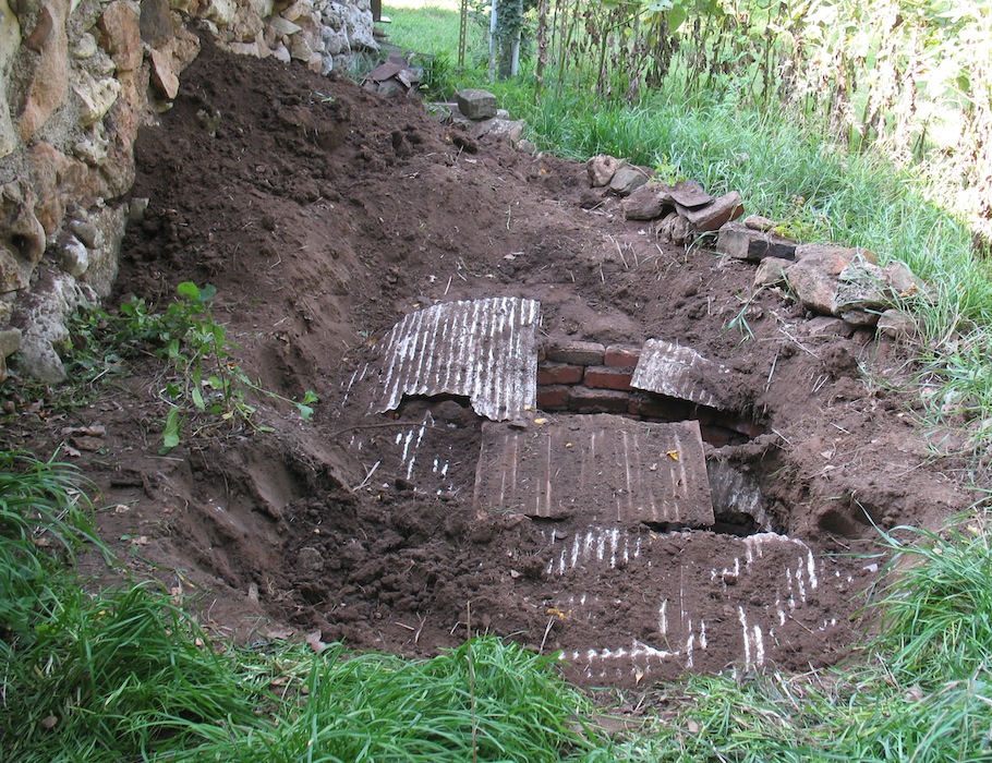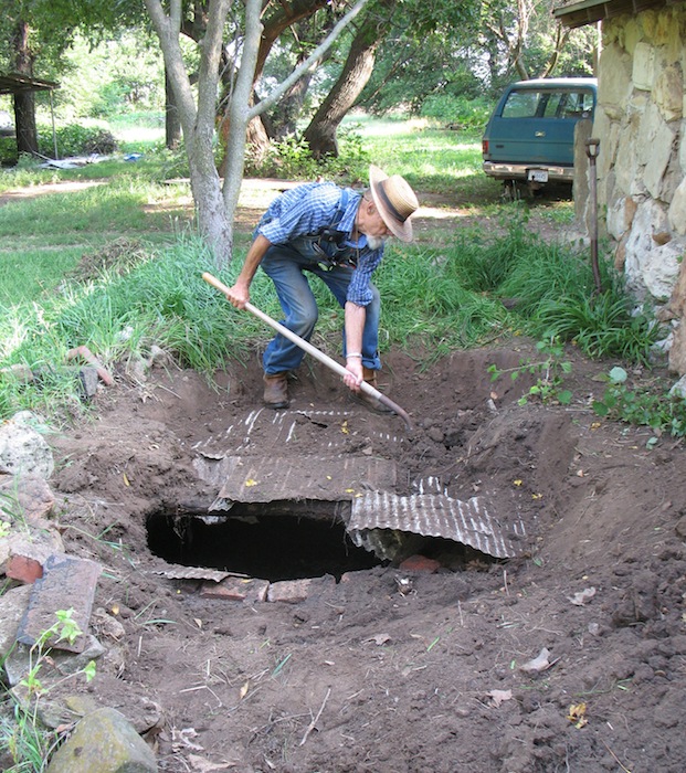 Wednesday, August 6, 2014 An old saying claims that life is all the stuff that happens to you while you're making other plans. Today's slice of life was an unexpected digging project. The toilet goes to a septic tank, but water from the kitchen sink and the shower goes into a buried sump west of the garage. The cover on said sump has deteriorated and started to collapse, so today I did the digging to remove the old cover and install a new one. The hole is lined with bricks, stacked without mortar to let the water seep into the ground. The cover I removed today is one I installed about twenty years ago. The one piece of galvanized corrugated steel in it is still good, but the fiberglass pieces are falling apart. So I won't use any fiberglass for the new cover. I found that the hedge logs supporting the cover are still solid after more than sixty years, but I'll be adding some fresh ones to last another sixty years. |