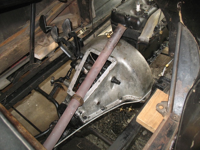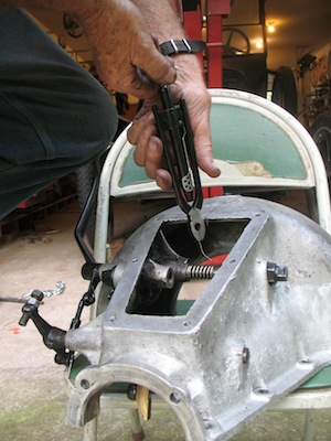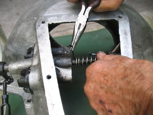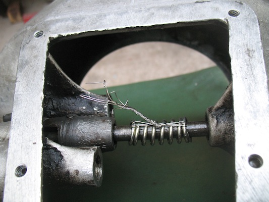 | Sunday, August 27, 2017 Except for a trip to town to buy bananas, today's activity centered around the roadster. I finished assembling the transmission, installed the oil pan, and set about preparing to install the hogshead (transmission cover). That last part took way too much time. To compress the low pedal spring I first tried a plastic zip tie. That was easy to install but wasn't strong enough to hold the compressed spring. So I tried the same thing with safety wire. A single strand of that wasn't strong enough either. I doubled the wire, but that broke too. Finally I quadrupled the wire, and that was strong enough to hold. |