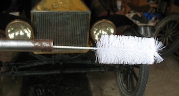 I rigged up a bottle brush on a broom handle and scrubbed out my new 1915 drive shaft tube, and finished cleaning all the rear end parts. Now they're waiting for the new parts to arrive so I can start reassembly. With that out of the way I put away tools and cleaned up in the shop. Next, while I'm waiting for those parts, I'll start installing an outlet for a phone charger in the runabout. My silly phone won't charge on house current anymore, but will still do it on a car charger. |