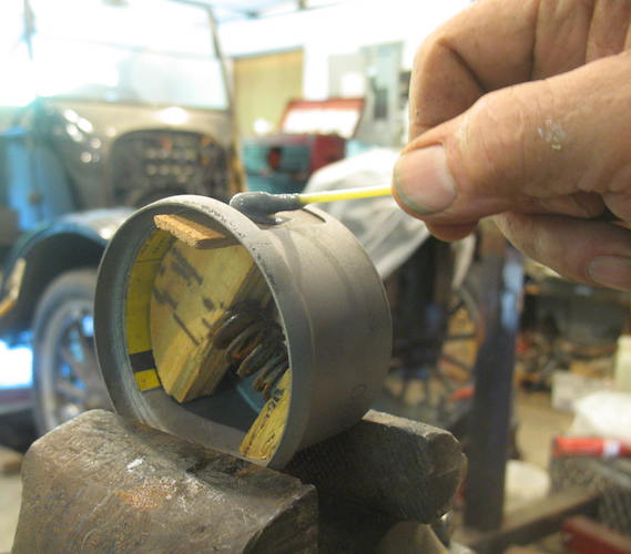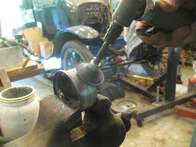Wednesday, August 11, 2021 So here's the rest of the story from yesterday. Recently I noticed a tiny coolant leak just to the left of the #1 head bolt. I wasn't particularly alarmed by this. Several years ago I patched a similar leak near the back of the head and had no further trouble from it. So on Monday I dug out this new little crack with a small grinder and filled it with JB Weld. Yesterday I sanded it smooth and started pouring coolant into the radiator to be sure I had stopped the leak. I had, but antifreeze welled up out of the bolt hole! Apparently the inside of this head's water passages have been so rusted out during the past century that it's going to spring leaks in multiple places. So I got on the phone to Model T Haven and asked Mark if he had a replacement head for me. He did, and I'll pick it up from him at the East Central Kansas T's club meeting tomorrow night. |